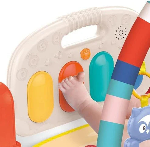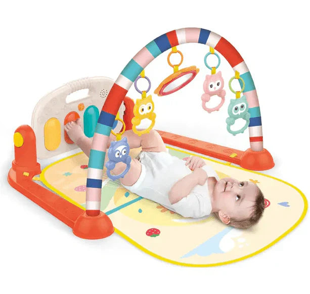Piano Fitness Rack – Baby Play Gym & Activity Mat – A multi-functional play mat with piano keys, hanging toys, and soft cushioning, designed to support newborn development from day one.